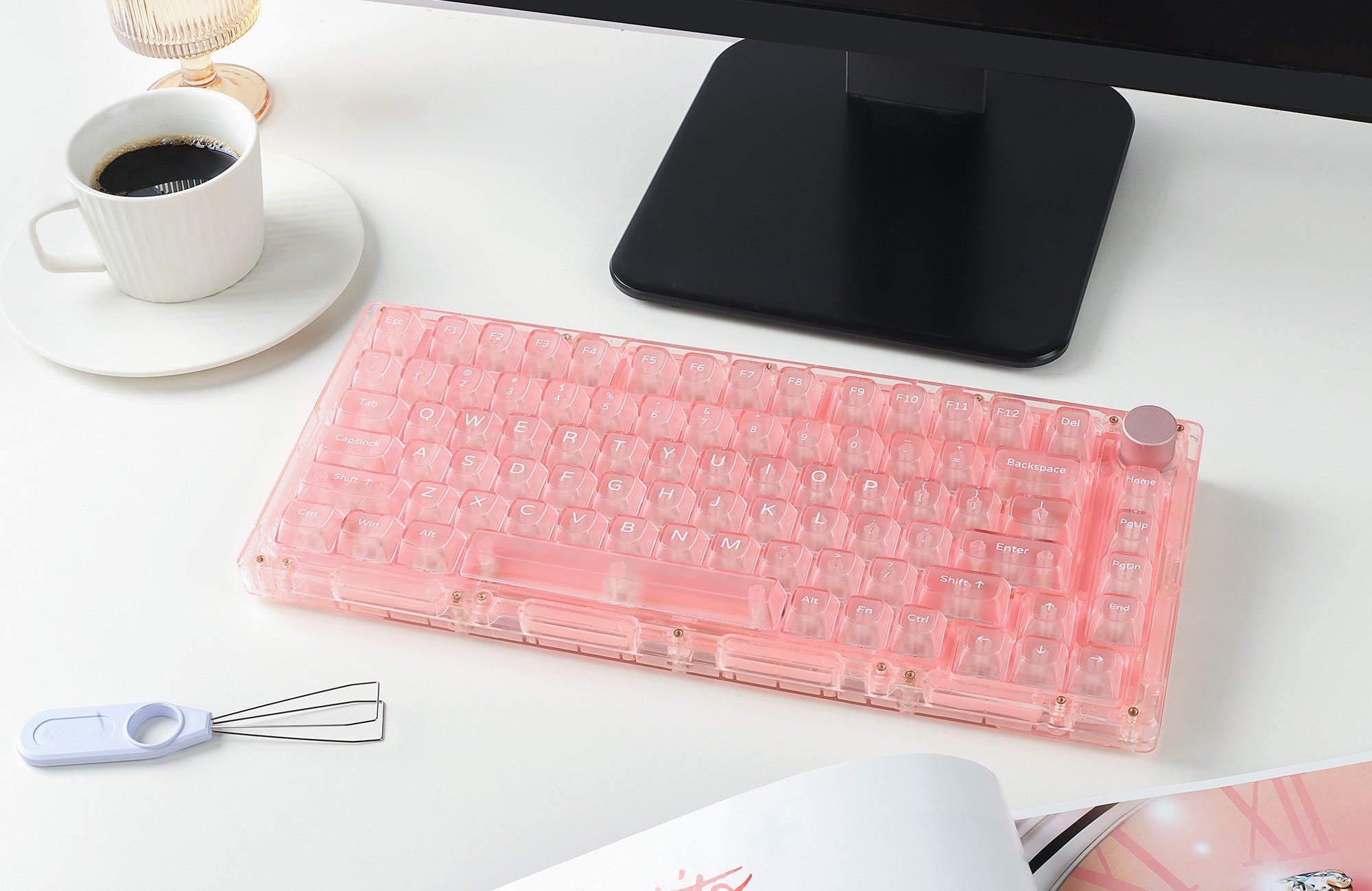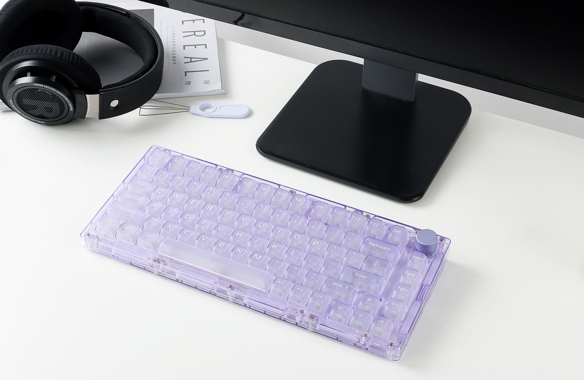MonsGeek ICE75 Fully Assembled brings a touch of brilliance to your desk with its transparent acrylic case and clear PC keycaps. Featuring Akko V3 Crystal Pro switches and 20 backlight modes, this keyboard offers customizable RGB effects for a dynamic typing ambiance. Switch between gasket and top-mount setups for a personalized feel.
