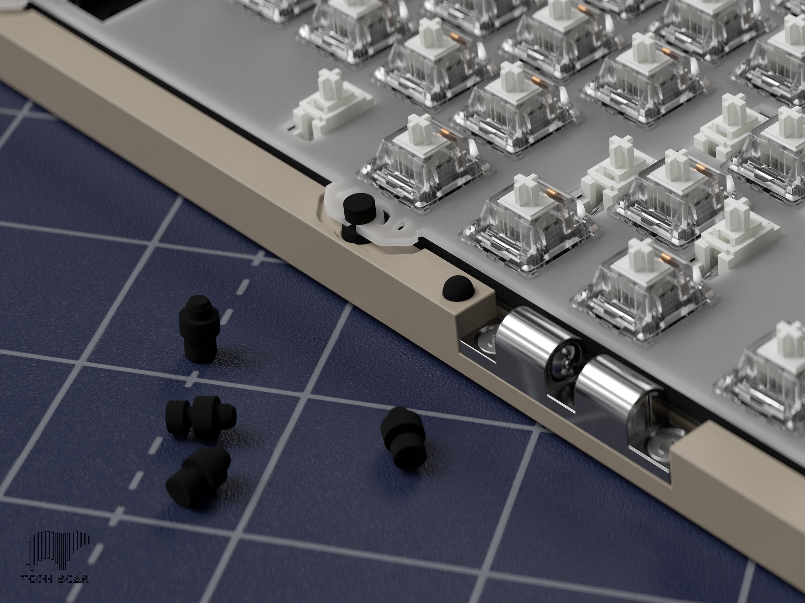 Tech Bear8-TKL offers 3 different PCB mounting styles to cater to various needs. Additionally, Tech Bear Studio has introduced a re-engineered and improved ball-bearing mechanism, featuring the EZ-assemble system specifically designed for keyboards.