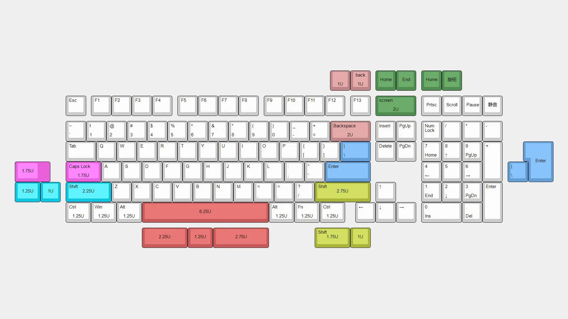 Supported layout: Split spacebars, back space, stepped caps Lock, left shift, right shift, ISO & ANSI enter