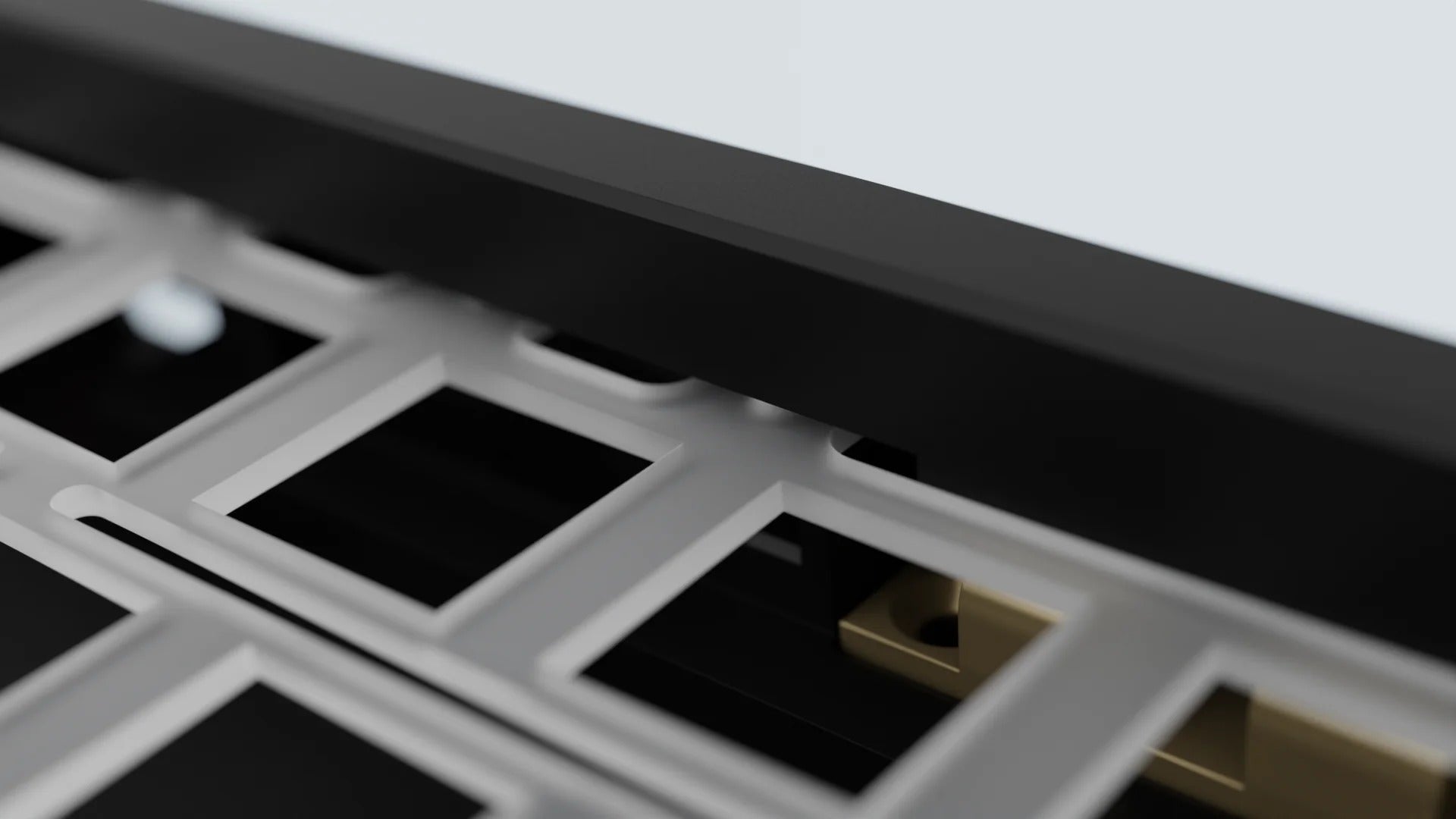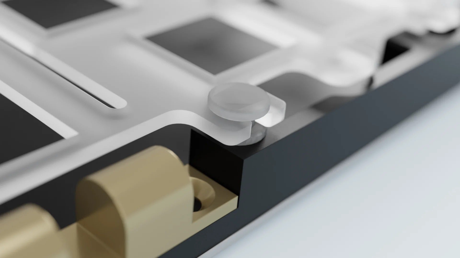 We have created a system by splitting the rubber rings into separate parts and using extended blockers to support the O-rings, ensuring that even when the keyboard is flipped, the PCB and O-rings will not come loose.